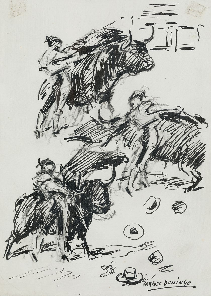 Al dorso etiqueta: "Dirección General de Bellas artes Fundación Rodriguez Acosta-Granada. Exposición "Los Toros en el arte". Colección D. Santiago Castro Cardús, Madrid