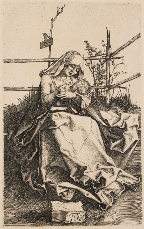Firmado en plancha con monograma: “AD”, en parte inferior y fechado: “1503”en la parte superior, en una tablilla colgante. Tirada posterior.