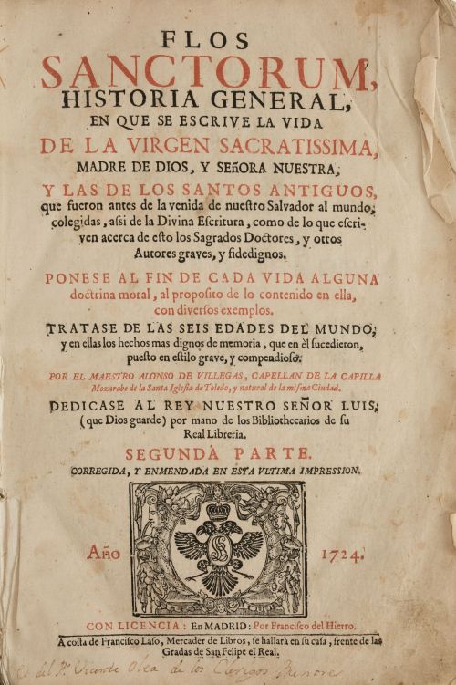 "Flos sanctorum, y historia general, en que se escrive la vida de la Virgen Sacratissima, ..." Segunda parte, 1724.