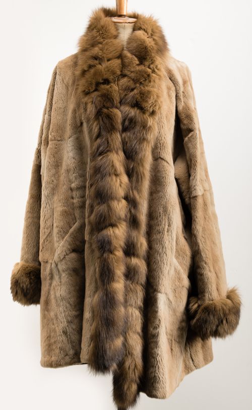 Abrigo de piel de marta cibelina, cuerpo rasurado. Reversible en gabardina.