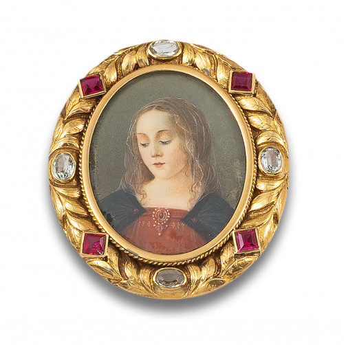 BROCHE S.XIX DE ORO Y MINIATURA RELIGIOSA