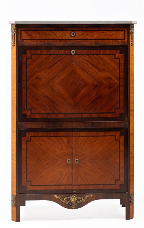 Chapado en frisage con esquinas achaflanadas y aplicaciones de metal dorado.