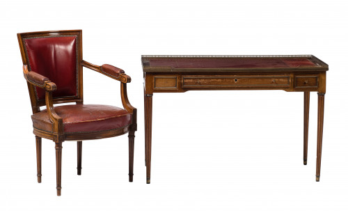 Buró plat y butaca de estilo Luis XVI, España, med. S. XX