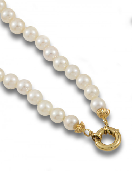 Collar formado por 52 perlas cultivadas de 8 mm. de diámetro. Cierre reasa marinera de oro amarillo de 18 kt.