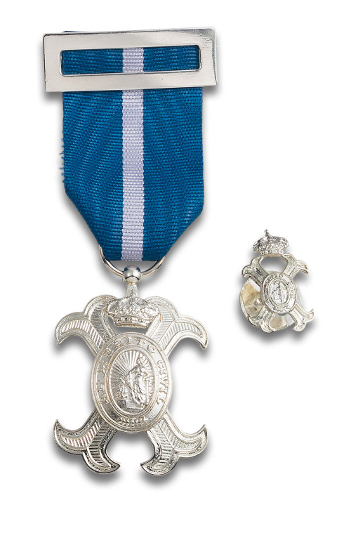 CRUZ DE PLATA Y MINIATURA DE LA ORDEN DEL MÉRITO CIVIL