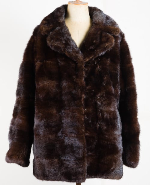 Chaquetón de lomos de visón. Con cierre de enganche. Interior forrado en tela. Talla M/L