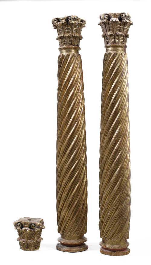 Columna barroca, España, S. XVII. De madera tallada, dorada y parcialmente policromada.