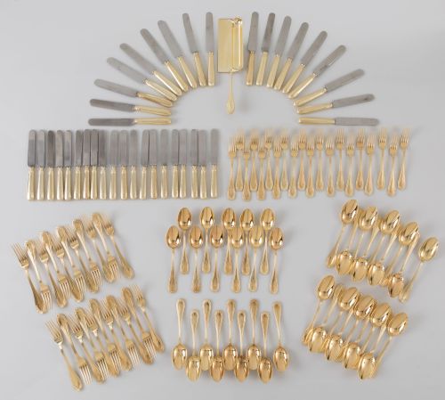 Compuesto por: 18 cucharas de mesa, 22 tenedores de mesa, 18 cuchillos de mesa, 20 cucharas de postre, 20 cuchillos de postre, 20 tenedores de postre y