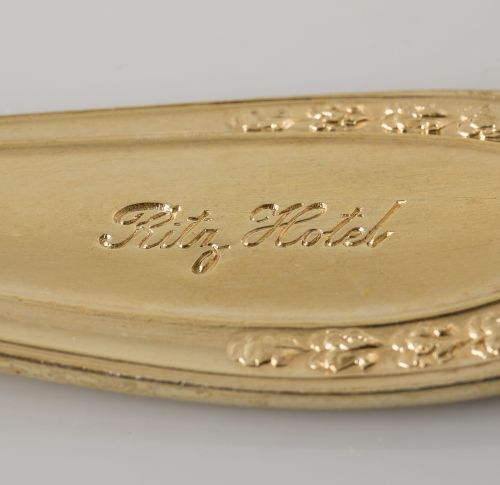 Decorada con guirnalda de hojas de roble e inscripción grabada "Ritz Hotel".