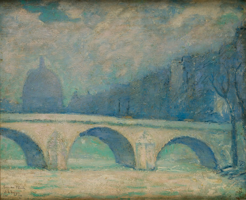 Esta obra inédita, (que por razones del cambio generacional ha aparecido en el mercado) fue llevada a cabo en 1881 y se la dedicó “A mon ami P Emile“el citado pintor francés, la cual representa una vista del Pont Royal de París y al fondo la silueta de la cúpula del Petit Palais.