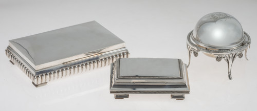 Lote de dos cajas de tabaco en plata española ley 916. Alma de madera.