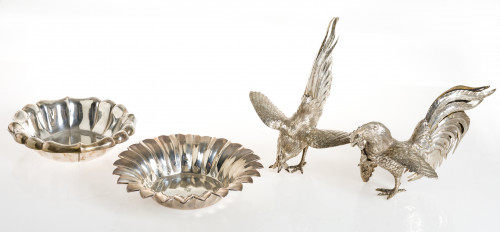 Dos centros circulares de plata, S. XX. Con decoración de gallones.