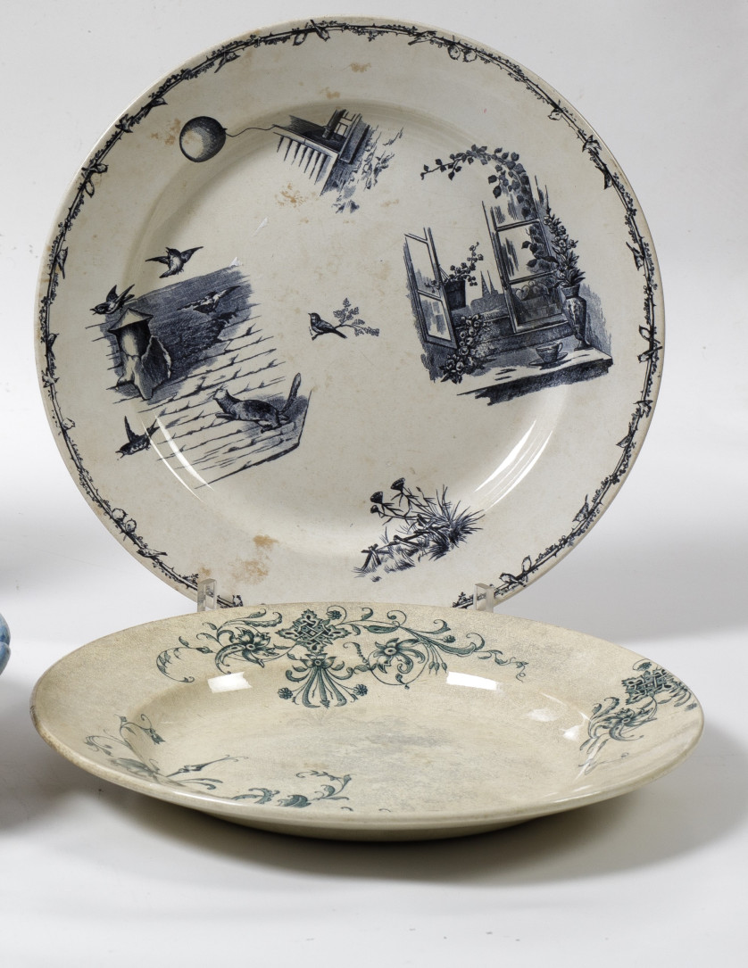 Dos platos de loza estampada, Francia, S. XX