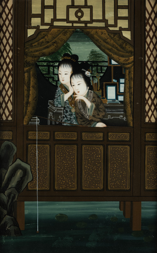 Pareja de óleos bajo cristal