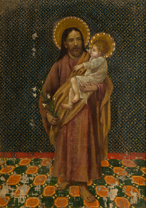 Óleo sobre lienzo adherido a tabla y con incrustaciones de pasta dorada.
