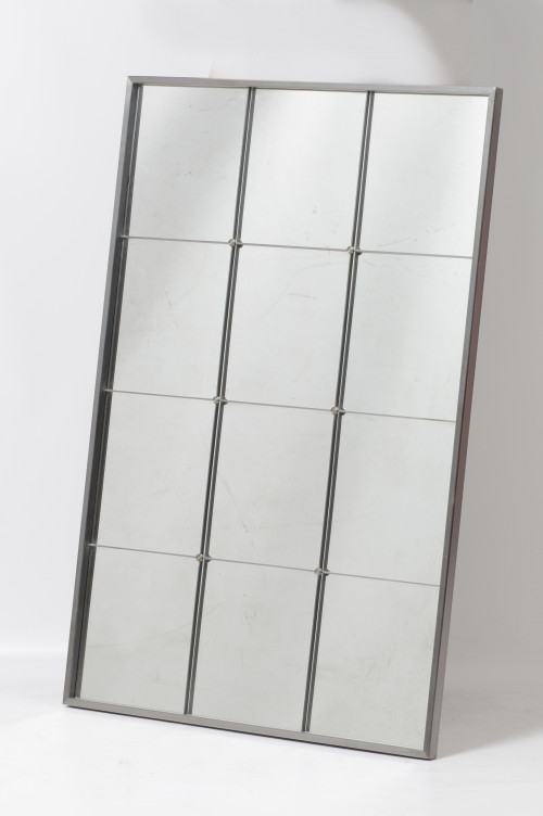 Espejo con marco en metal plateado, dividido en cuadrículas. Medidas: 125 x 83 cm.