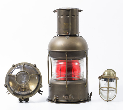 Farol de barco, Japón, S. XX. De metal y cristal. Con chapa de manufactura.