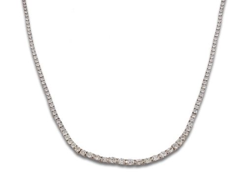 Gargantilla riviere en oro blanco de 18 kt. con diamantes, talla brillante y oval, con un peso total estimado de 16.30 ct.