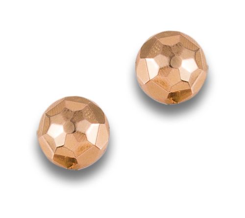Gemelos, años 70, de oro amarillo bajo. Diseño de medias esferas facetadas. Peso: 2,6 Gr..