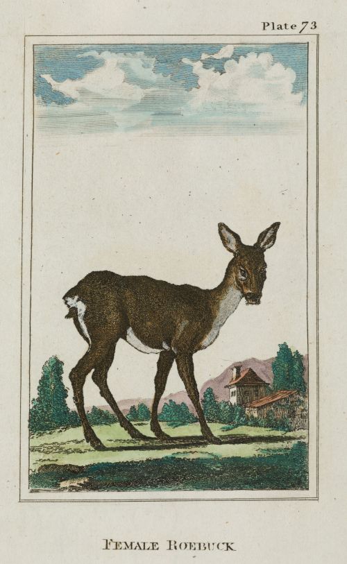 CORZO Roebuck: macho y hembra; OCELOTE o GATO Mexicano: macho y hembra. Para “Natural History, General and Particular”, del conde de Buffon. London, 1812.