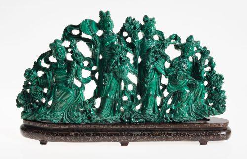Gran grupo chino en malaquita tallada, representa una escen