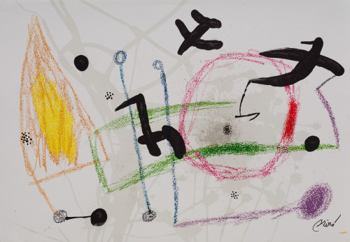 Firmada en plancha, deterioros en el papel. Procedente del portafolios de dicho nombre compuesto de 22 litografías originales, con una tirada de 1500 ejemplares, que ilustran poemas de Rafael Albertí. Editada por Polígrafa Barcelona.