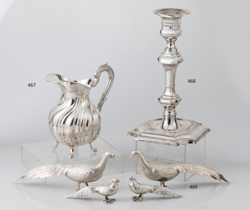 Jarra de plata de ley 916 y platero J. Pérez Fernández, España, med.S.XX