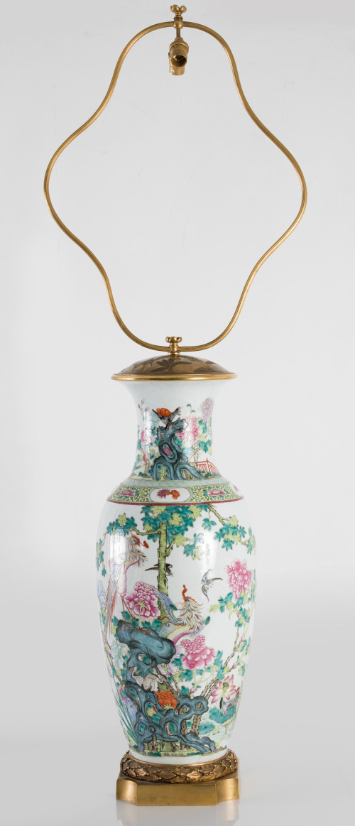 Jarrón de porcelana, Familia Rosa, Cantón, China, S. XIX.