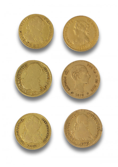 Lote de seis monedas de oro españolas: