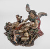 Ambas comparten un mismo tratamiento en la policromía de las carnaciones y una misma paleta cromática delicada y acompasada que es común al resto de conjuntos conocidos de la autora de estas características. En ellos emplea pinceladas de oro líquido, como en las cabelleras de algunas figuras o en ciertos tejidos con el objetivo de dotarlos de una mayor suntuosidad. Los elementos que conciernen al paisaje en el que se desarrolla la escena, en contraposición, reciben un tratamiento mucho más naturalista en el que se emplean diversos matices de gamas ocres y sombras. Su fino modelado y el delicado tratamiento que impregna toda la composición convierten a esta “alhaja” de la Roldana en una pieza especialmente atractiva para el coleccionismo, ejemplo del talento de esta célebre escultora y de su gran destreza y sensibilidad.