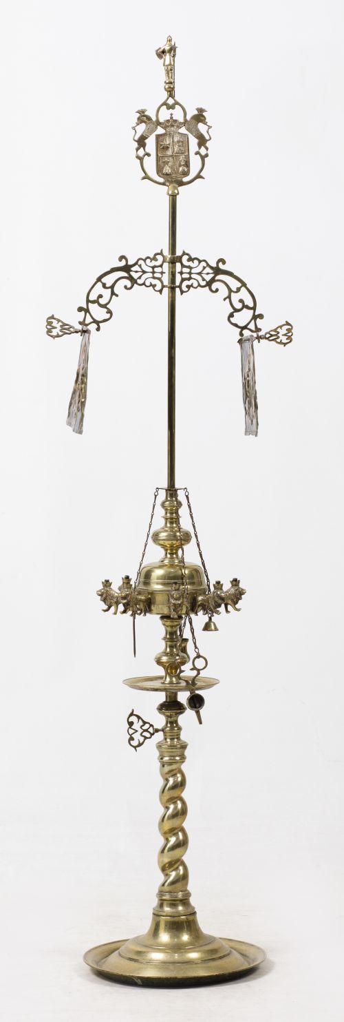 Lámpara de aceite de metal dorado, España, med. S. XX