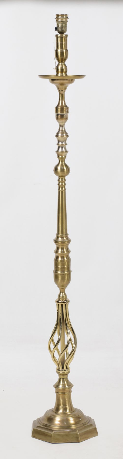 Lámpara de pie de metal dorado, España, med. S. XX