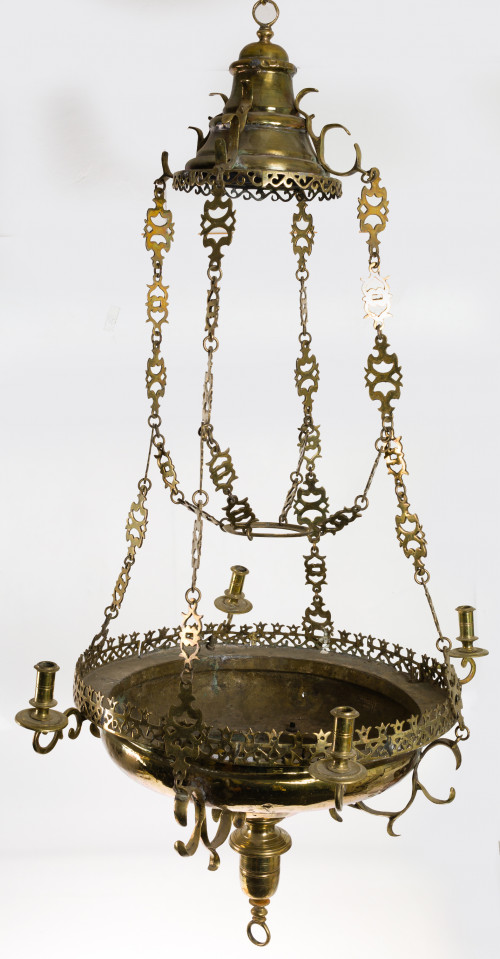 Lámpara votiva de bronce dorado siguiendo modelos del siglo XVII