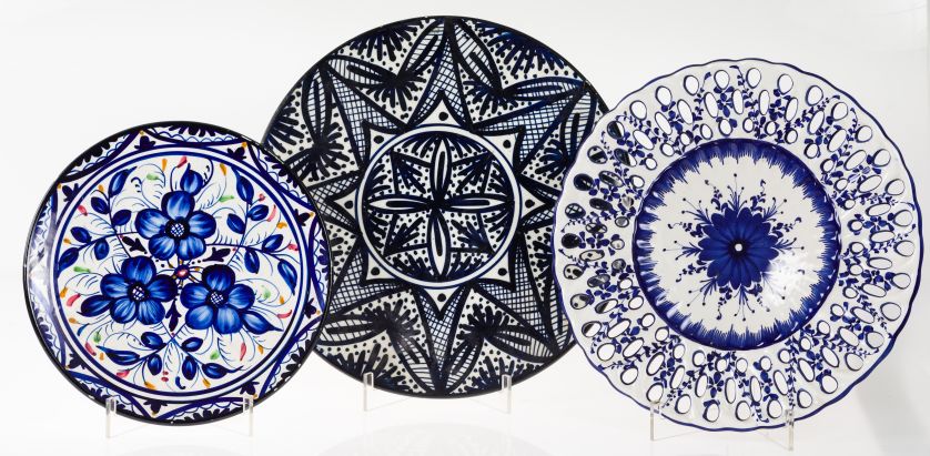 Lote de tres platos de cerámica esmaltada, diferentes manufacturas, S.XX