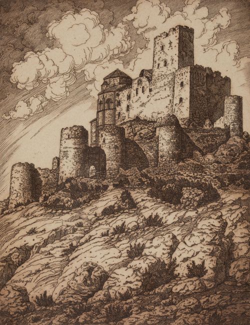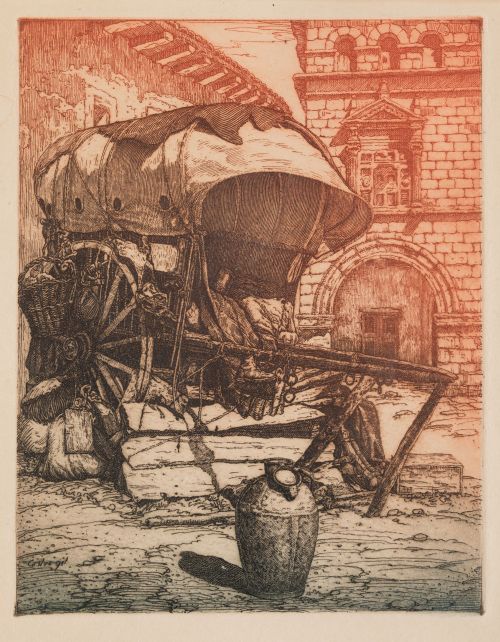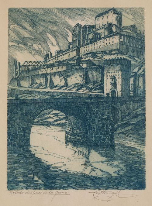 Conjunto de seis obras firmadas y tituladas a lápiz en la parte inferior. Una de ellas sin firmar. Cuatro de ellas se presentan enmarcadas