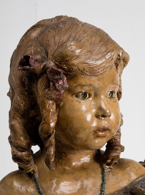 El escultor consiguió captar en este retrato, con naturalidad y sin ninguna afectación, el encanto y la ternura de la pequeña, que parece observar con atención su trabajo. Lleva el cabello peinado con tirabuzones, que recogidos por un lazo enmarcan su delicado rostro. Los volantes de su vestido se funden para dar forma al pedestal, de inspiración modernista, ornamentado con algunas rosas, apenas esbozadas.