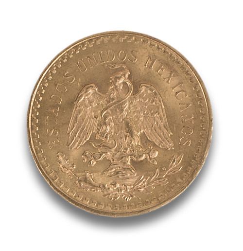 Moneda de oro de 50 pesos mexicanos.