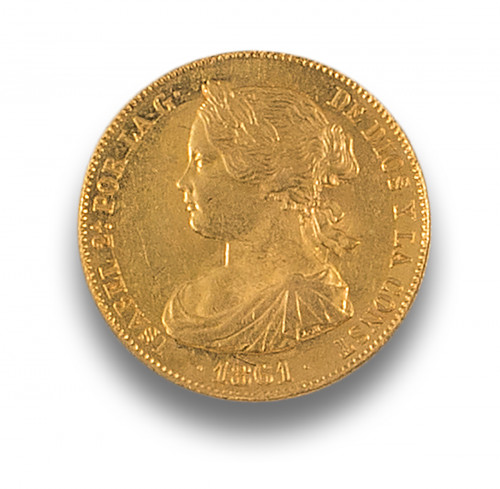 Moneda de oro de 100 reales españoles de la reina Isabel II,  de 1861.