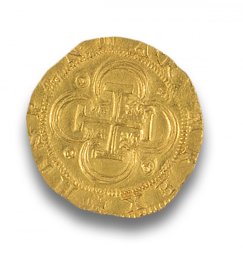Moneda de oro 2 Escudos del rey Felipe II. Peso: 6,50 gr