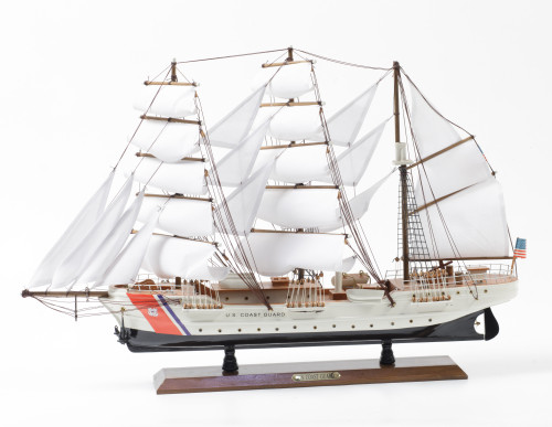 Maqueta de guardacostas barco americano, S. XX. Se presenta en vitrina de conglomerado y pino (con faltas).