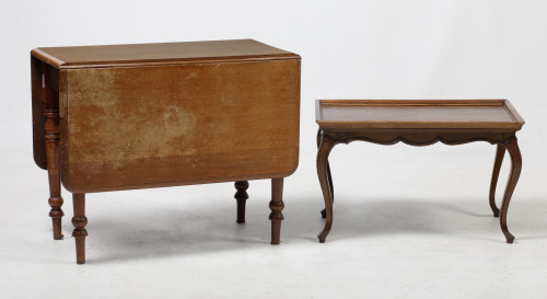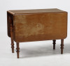 Mesa Pembroke, S XX. Patas torneadas. Precisa repaso de barniz. Medidas cerrada: 74 x 46 x 91 cm. Cada ala: 44 cm.