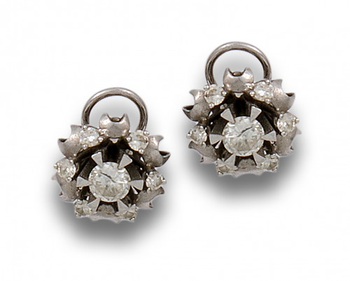 PENDIENTES ROSETONES, AÑOS 60, DE DIAMANTES Y ORO BLANCO