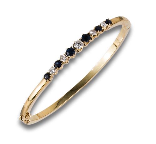 PULSERA RÍGIDA DE ORO, DIAMANTES Y ZAFIROS