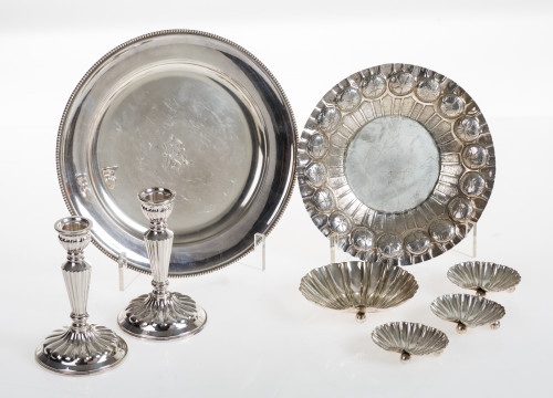 Pareja de candeleros de plata, con decoración gallonada, ley 916. Bases con contrapeso.