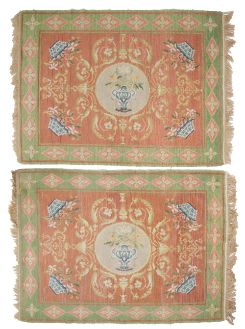 Pareja de alfombras de lana anudada a mano, España, med.S.XX
