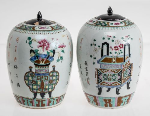 Pareja de botes de gengibre, Familia Rosa, Cantón, ffs.S.XIX - pps.S.XX