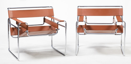 Pareja de butacas de acero y piel siguiendo el modelo Wassi