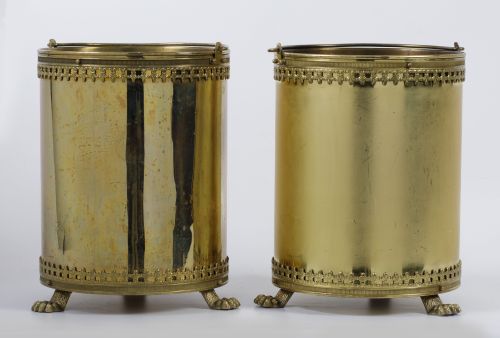 Con tres patas rematadas en garra y con decoración en relieve de flores de lis.