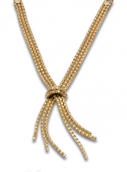 Sautoir en oro amarillo de 18 kt. a modo de cordeles anudados. Peso: 43,40 Gr..