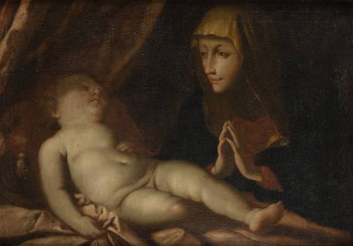 "La Virgen adorando al Niño Jesús dormido"